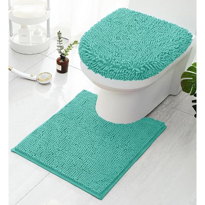 Home Mart Goods 2 Piece Set Turquoise Blue Soft Cozy Plush Chenille Bath Mat Bathroom Rug & Toilet Seat Cover