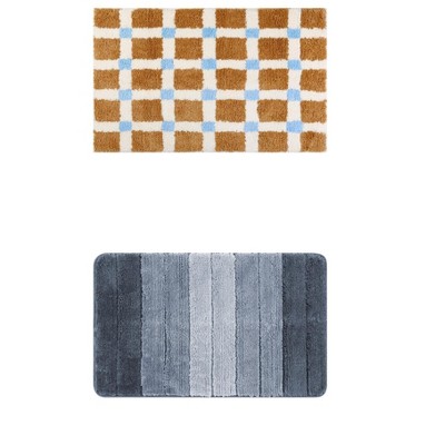 Unique Bargains 2Pcs Plush Gradient Striped Microfiber Shaggy Bathroom Mat