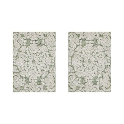 Medallion Collection 2 Piece 100% Cotton Tufted Bathroom Rug Set with Non-Slip Backing, Machine Washable, Tumble Dry Bath Mat