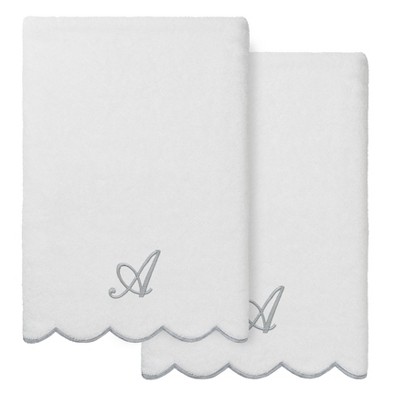 Linum Home Textiles 100% Turkish Cotton ADORNIA Scallop Personalized Towel Collection - Grey