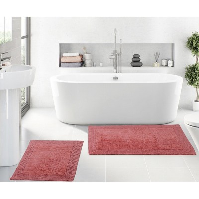 Waterford Collection Tufted Bath Rug, Extra Soft and Absorbent, Non-Slip Bath Mats, Machine Washable bath rugs for Bathroom, 2 Piece Set, Pink