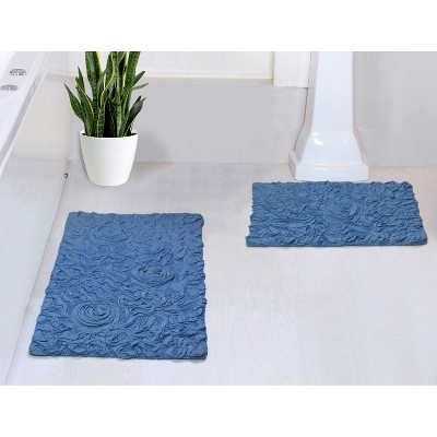 Bell Flower Collection Tufted Bath Rugs, Extra Soft and Absorbent, Non-Slip Bath Mats, Machine Washable Bathroom Mats, 2 Piece Set with Heart, Blue