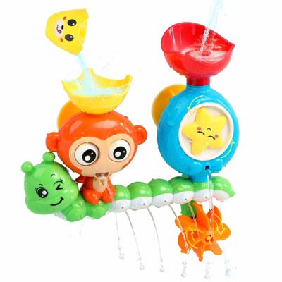 Etokfoks Bath Toys for Toddlers 1 2 3 Years Old Interactive Monkey Waterfall Toy with 2 Suction Cups Multicolored 1 Piece