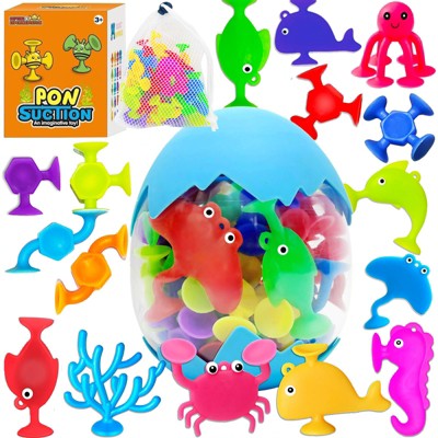 Etokfoks 32pcs Ocean Animal Suction Cup Bath Toys with Eggshell Storage Mold Free for Kids Ages 1-3 Water Table Bathtub Classroom