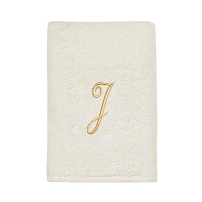 Avanti Ivory with Gold Script Monogram Hand Towel Letter J