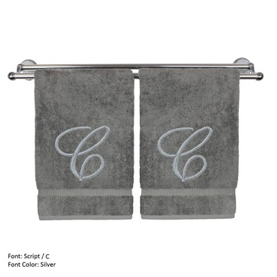 BC BARE COTTON Monogrammed Hand Towel, 100% Turkish Cotton - Set of 2 - Gray - Silver Script