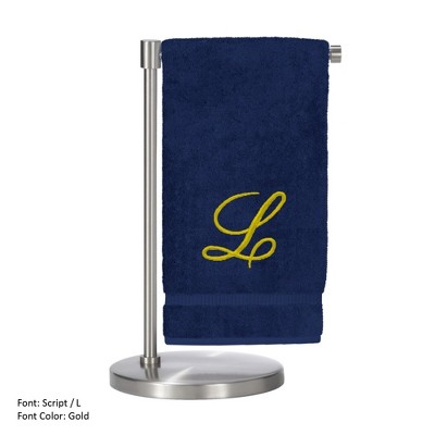 BC BARE COTTON Monogrammed Bath Towel, Personalized Gift, 27 x 54 inches - Set of 2 - Navy - Gold Script