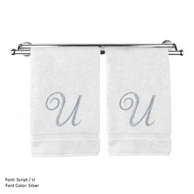 BC BARE COTTON Monogrammed Hand Towel, 100% Turkish Cotton - Set of 2 - White - Silver Script