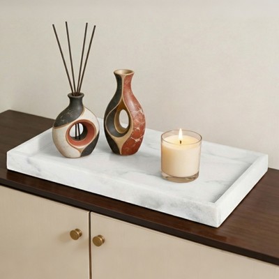 Natural Marble Bathroom Tray 11.8x7.9 in, Rectangular Vanity Organizer with Non Slip Pads for Kitchen Dresser