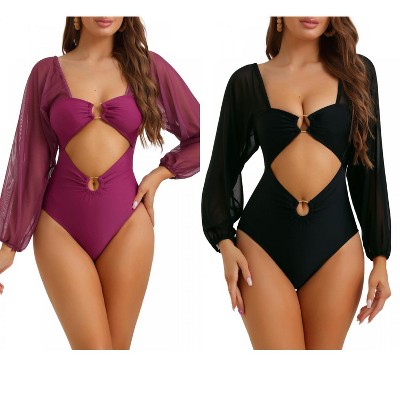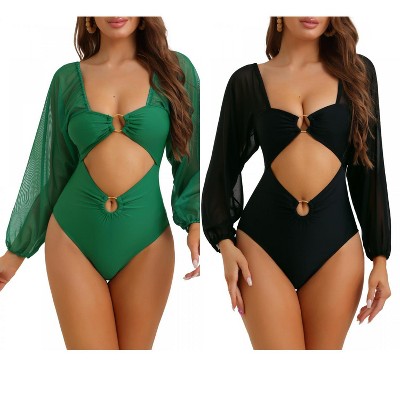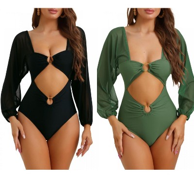 Charmo Women's Ruffled Sleeves Bust Ring Accent Figure-Flattering Cutouts One Piece Swimsuit