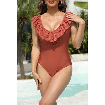 Clearlove Women's Ruffled One Piece Swimsuit V Neck Lace Up