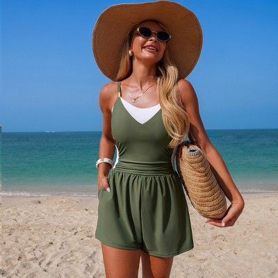 Trimshaper Women's Farrah Swim Romper with Pockets