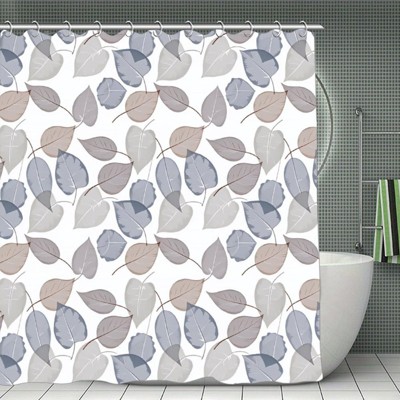 Neutral Grey & Tan Leaf Shower Curtain, Waterproof Polyester Modern Botanical Bathroom Decor 70.8x70.8 Iniches