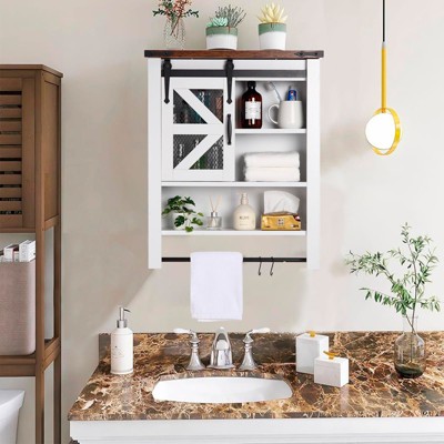Bathroom Storage Cabinet with Sliding Barn Door - Over Toilet Organizer, Adjustable Shelf, Farmhouse Style