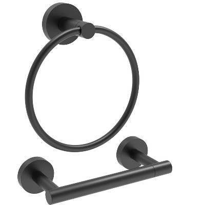Itopfox 5-Piece Matte Black Bathroom Accessories Set, Stainless Steel Towel Bar, Towel Ring, Toilet Paper Holder, Wall Mounted