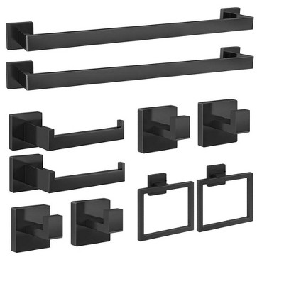 Itopfox 10-Piece Black Stainless Steel Bathroom Hardware Set - Towel Bars, Rings, Hooks & Toilet Paper Holders for Wall Mounting