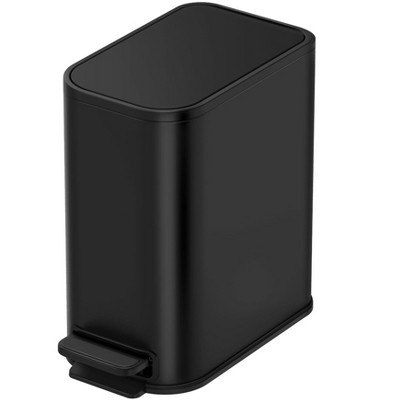 Aoibox Slim Trash Can with Soft Close Lid, Step Pedal, 6L Stainless Steel Garbage Bin for Bathroom, Bedroom, Office, Kitchen in Matte Black