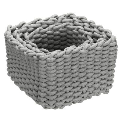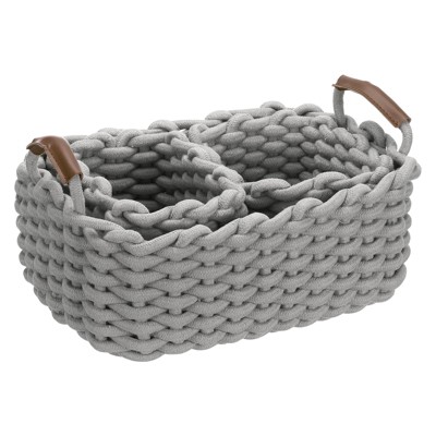Unique Bargains Home Bedroom Decor Rectangular Storage Mini Woven Baskets White/Gray 5.9x7.1 Inch