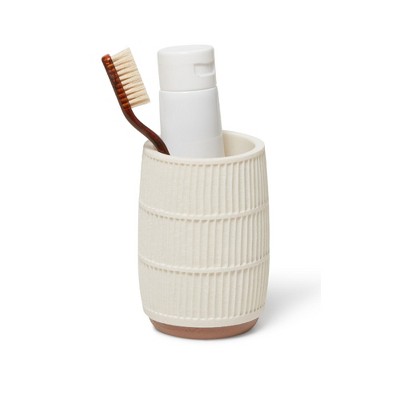 Makeup Brush Holder and Toothbrush Cup White - Nu Steel: Resin Bathroom Tumbler, Spot Clean, 4.5" Height