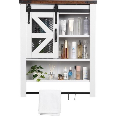 Wall-Mounted Bathroom Cabinet with Sliding Barn Door and Adjustable Shelf, Farmhouse-Style Over-Toilet Storage with Towel Bar, Suitable for Bathroom
