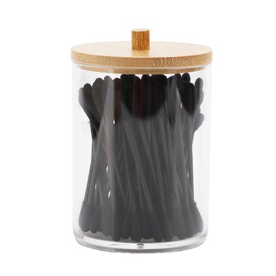 Unique Bargains Acrylic Bamboo Wood Cotton Swab Jar Clear Wood Color 1 Pc