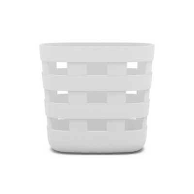 - white plastic bathroom shelves