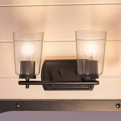 Progress Lighting Bravo Collection 2-Light Bath Wall Light in Brushed Nickel with Etched Glass Shades