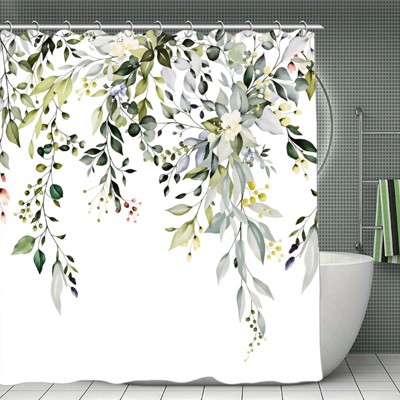 Eucalyptus Shower Curtain, Watercolor Green Leaves on The Top Plant with Floral Bathroom Curtain Bathtub Home Decor Waterproof Fabric 70.8x70.8Inch