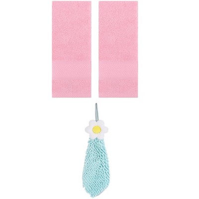 REGALWOVEN Chenille Soft Absorbent Flower Hanging Hand Towels for Bathroom 2 Pcs