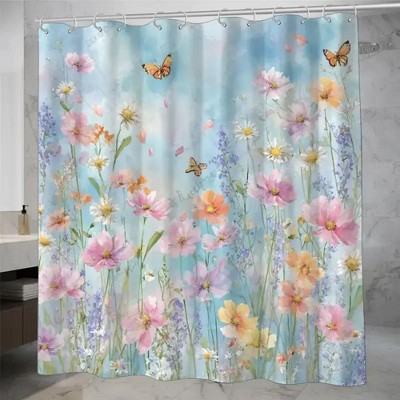 Lomsoe Floral Spring Flowers Shower Curtain Summer Shower Curtains Rustic Seasonal Curtain for Bedroom Bathroom Decor with Hooks 70.8x70.8Inch