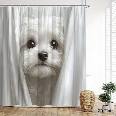 Lomsoe 1PC White Dog Shower Curtain Featuring a Puppy with Expressive Eyes, Minimalist Pet Portrait Design,Includes 12 Hooks,Bathroom Decor.