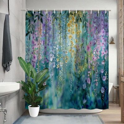 Lomsoe 1PC Floral Shower Curtain - Elegant Bathroom Decor with Pastel Floral Pattern Bath Curtain with Hooks.