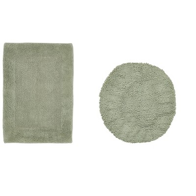 Knightsbridge Stylish And Comfortable All Season Traditional Wide Cut Design Cotton Bath Rug 17" X 24" Sage