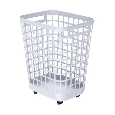 2.6-Bushel White Rolling Laundry Hamper with Easy-Clean Plastic and Smooth-Glide Wheels