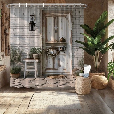 Lomsoe 1pc Vintage Farmhouse-Style Shower Curtain Showcasing a Rustic Wooden Door,Perfect for Bathroom for home Decor.
