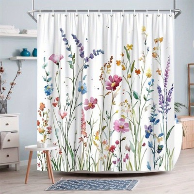Soscooter Rainbow Flower Small Butterfly Leaf Shower Curtain Polyester For Bathtub Shower Divider Bathroom Decor 70.8x70.8Inch