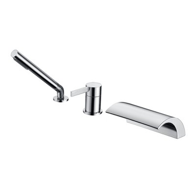 ChicFurnit Bathroom Sink Faucet Deck Mount Waterfall Tub Spout Set with Hand Shower for Luxury Bathtubs, Gold, 16"*13"*4"
