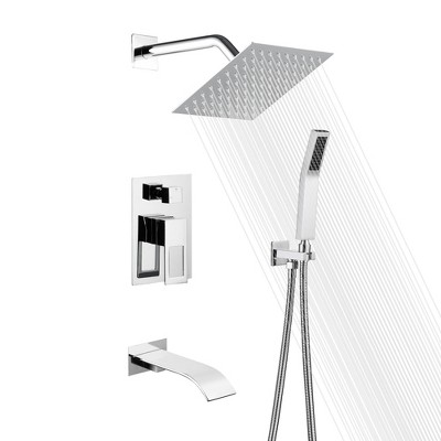 Sumerain Modern 8-inch Square Rain Shower System, Single Lever Wall Mount Tub & Shower Faucet Chrome