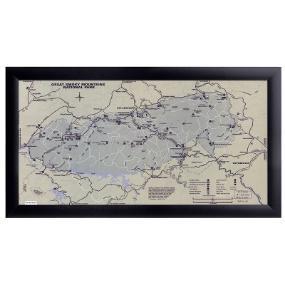 9" x 18" Great Smoky Mountains National Park Map I Framed Wall Art, Contemporary Landscape Home Decor, Glass Facing