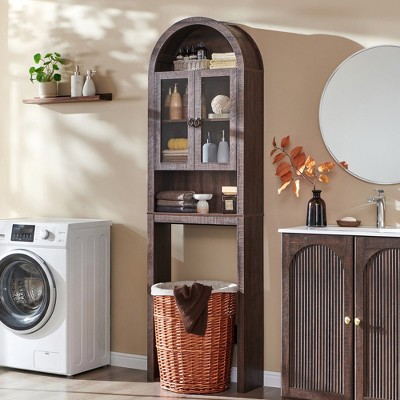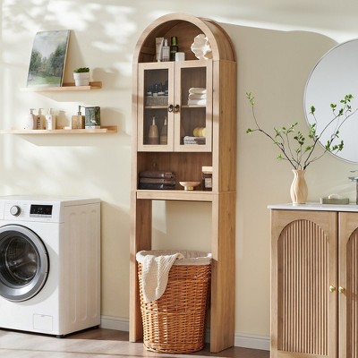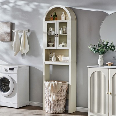 Arched Over The Toilet Storage Cabinet with Acrylic Doors, Bathroom Shelf Organizer, Modern Bathroom Cabinet with Adjustable Shelf