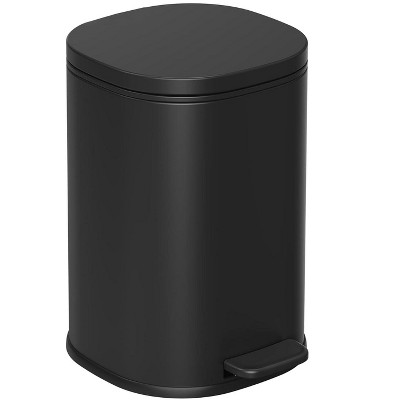Aoibox Black Bathroom Trash Can with Lid, 1.3 Gallon Small Garbage Can with Foot Pedal, Metal Round Wastebasket for Bathroom, Bedroom, Office