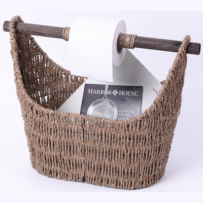 Storied Home Boho Oval Braided Bankuan Bathroom Toilet Paper Basket with Wood Handle