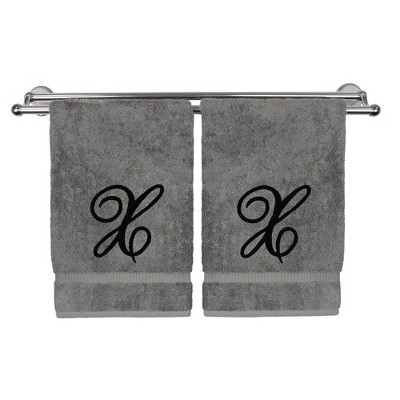 BC BARE COTTON Monogrammed Hand Towel, 100% Turkish Cotton - Set of 2 - Gray - Black Script