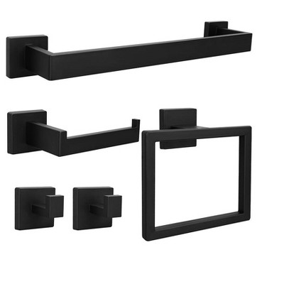 Itopfox 15 Piece Bathroom Hardware Set 3 Sets 23.6 Inch Towel Bars Rings Toilet Paper Holders Hooks Black Stainless Steel Wall Mount