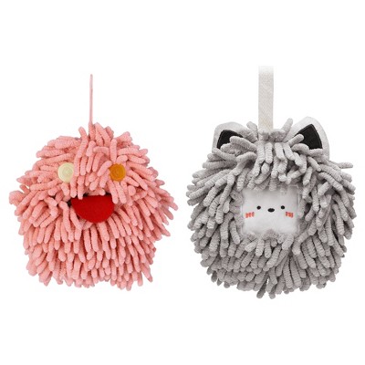 REGALWOVEN Bathroom Cute Decorative Absorbent Soft Chenille Hanging Hand Towel 7" x 7" 2 Pcs