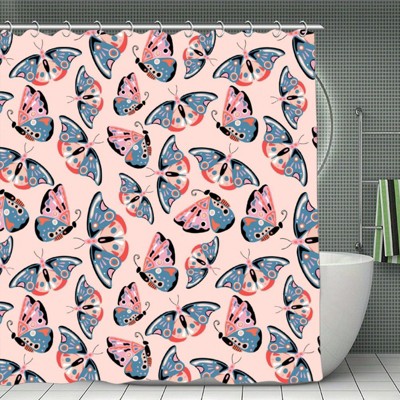 Soscooter Pink Red White Butterfly Print Shower Curtain Bathtub Window Room Divider Polyester Bathroom Decor 70.8x70.8Inch