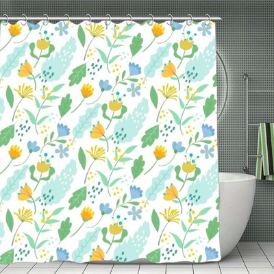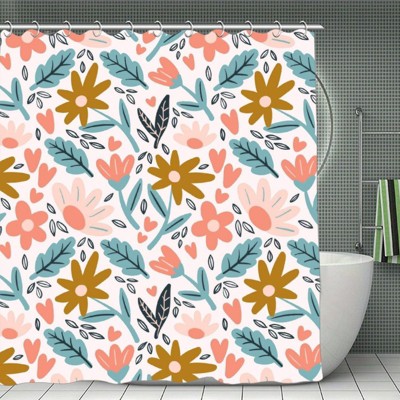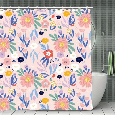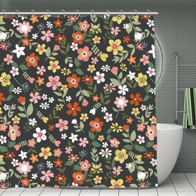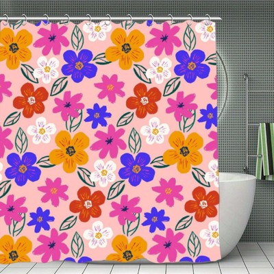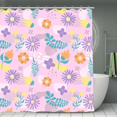 Soscooter Colorful Flower Leaf Shower Curtain Polyester Waterproof Machine Washable Bathtub Shower Room Divider Bathroom Decor Accessory 70.8x70.8Inch