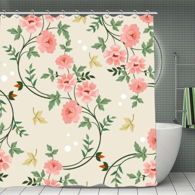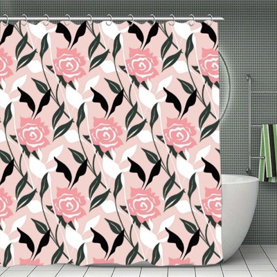 Soscooter Pink Roses Leaves Polyester Shower Curtain For Bathtub Shower Window Curtain Room Divider Bathroom Decor 70.8x70.8Inch