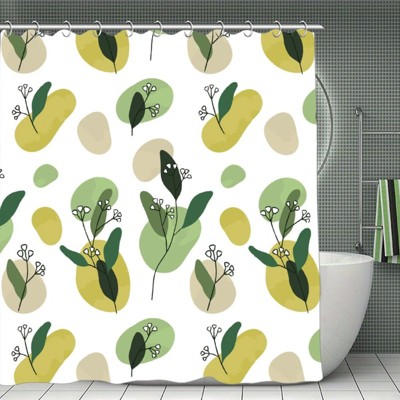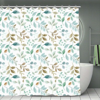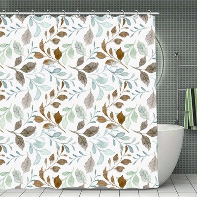 Soscooter Green Brown Gray Leaves Shower Curtain Polyester Water Resistant Bathtub Shower Room Divider Bathroom Decor 70.8x70.8Inch