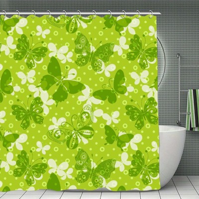 Soscooter Green Butterfly Polka Dot Polyester Shower Curtain Bathtub Shower Window Curtain Room Divider Bathroom Decor 70.8x70.8Inch